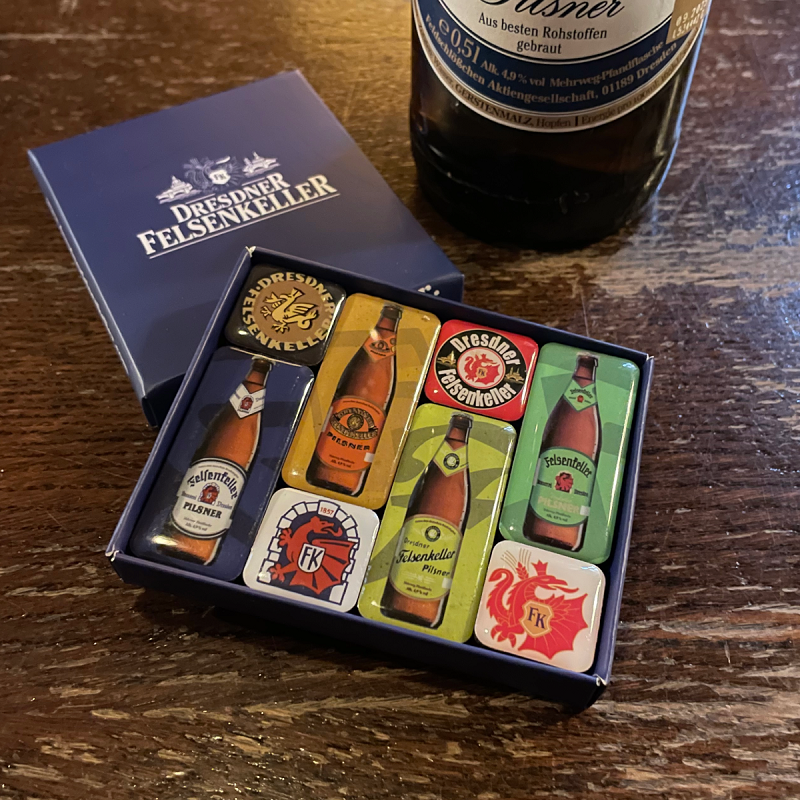 Nicht nur für Nostalgiker - Unsere Retro-Magneten erinnern an die lange Geschichte von Dresdner Felsenkeller Bieren und halten gleichzeitig die Erinnerung für den nächsten Biereinkauf an Metallflächen fest.